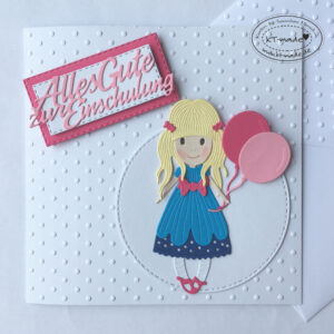 Einschulungskarte mit Mädchen und Luftballons